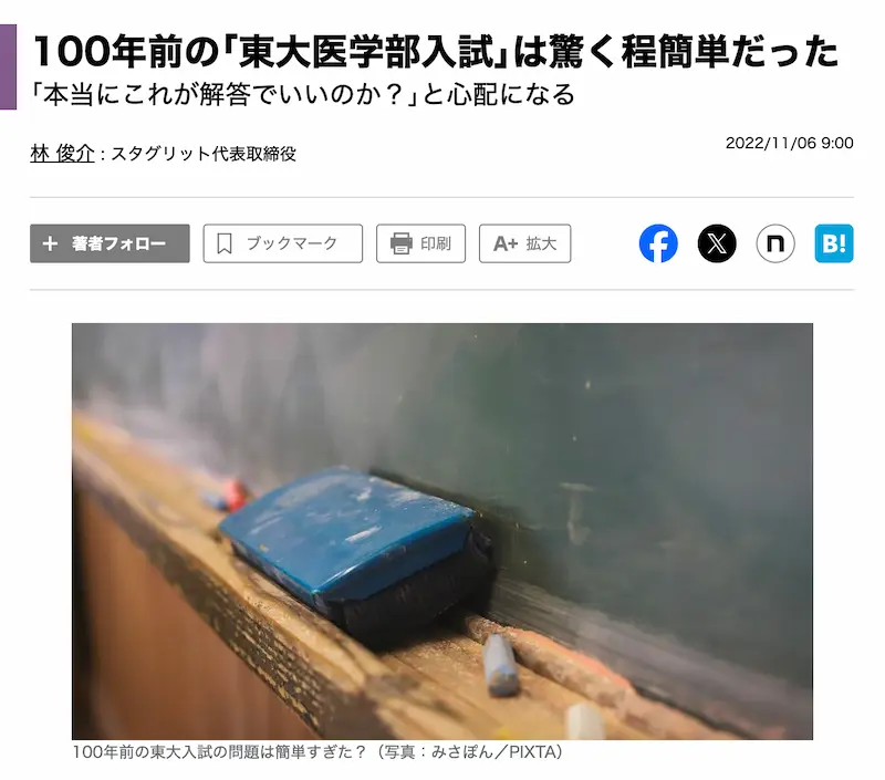 東洋経済オンライン “100年前の「東大医学部入試」は驚く程簡単だった”