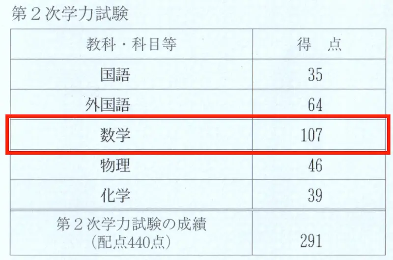 ちなみに,合計点は理科三類の合格最低点を 18 点くらい上回っていました.