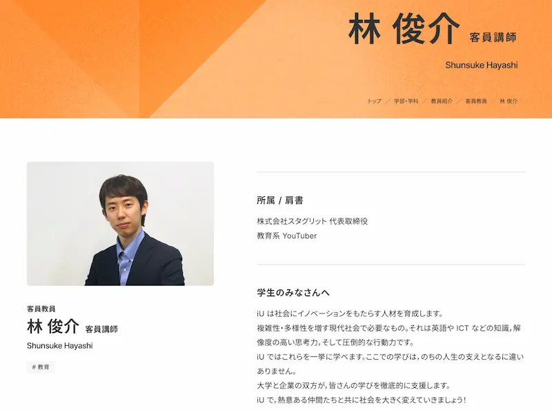 情報経営イノベーション専門職大学 (iU) にて客員講師を務めています.これまで, “バーチャル研究室” での学生の指導などを行ってきました.